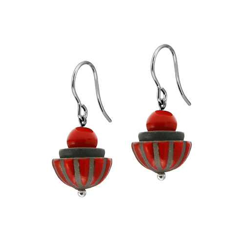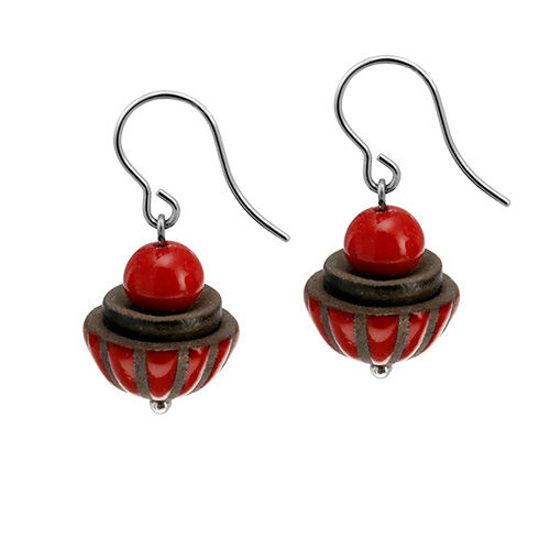 Ohrhänger mit handgefertigten Keramikteilen, die Ohrhaken sind aus Edelstahl, z.T. PVD beschichtet