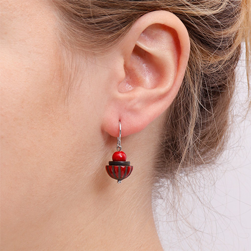 Ohrhänger mit Keramik Schale, Halbkugel und einer kleinen Kugel, in der Grösse ca. Ø 13,5 mm, Gesamthöhe ca. 15 mm