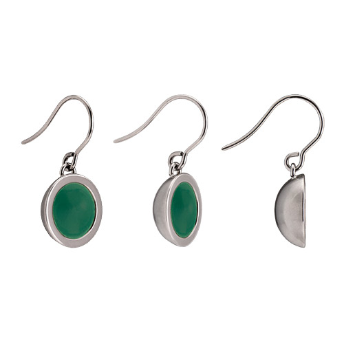 Fassung und Ohrhaken in Edelstahl poliert oder matt, zum Teil PVD beschichtet in Schwarz matt, Gelbgold matt oder Roségold poliert