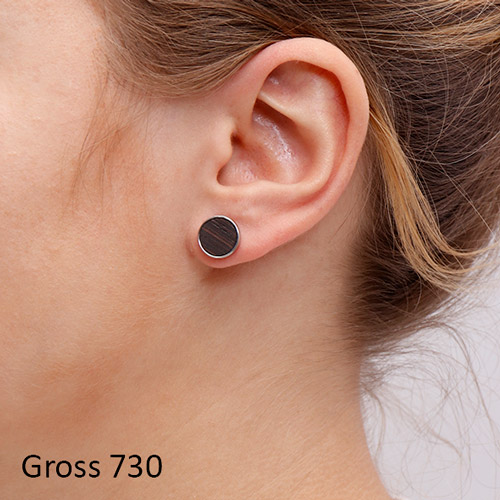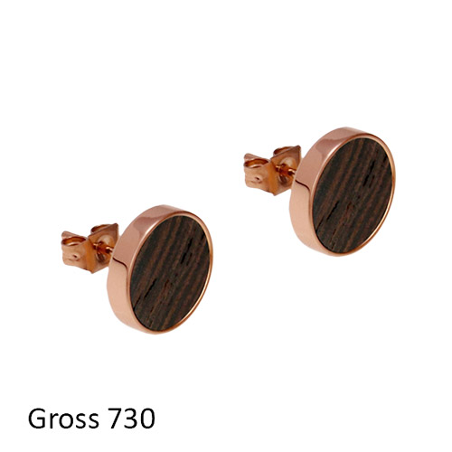 Ohrstecker mit Holzinnenteil, die Fassung und der Stecker sind aus Edelstahl, z.T. PVD beschichtet