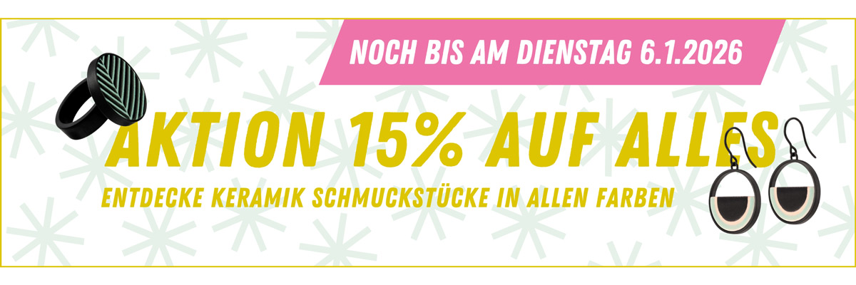Bitte geben Sie im Warenkorb, unten rechts den folgenden Gutscheincode ein und Sie erhalten den Rabatt auf Ihren Einkauf. Dieser wird ihnen direkt bei der Zusammenfassung angezeigt. Diese Aktion gilt ab sofort bis einschliesslich 6.1.2026. In diesem Zeitraum gewähren wir 15% Rabatt auf alle Schmuckstücke aus unserem Sortiment.
